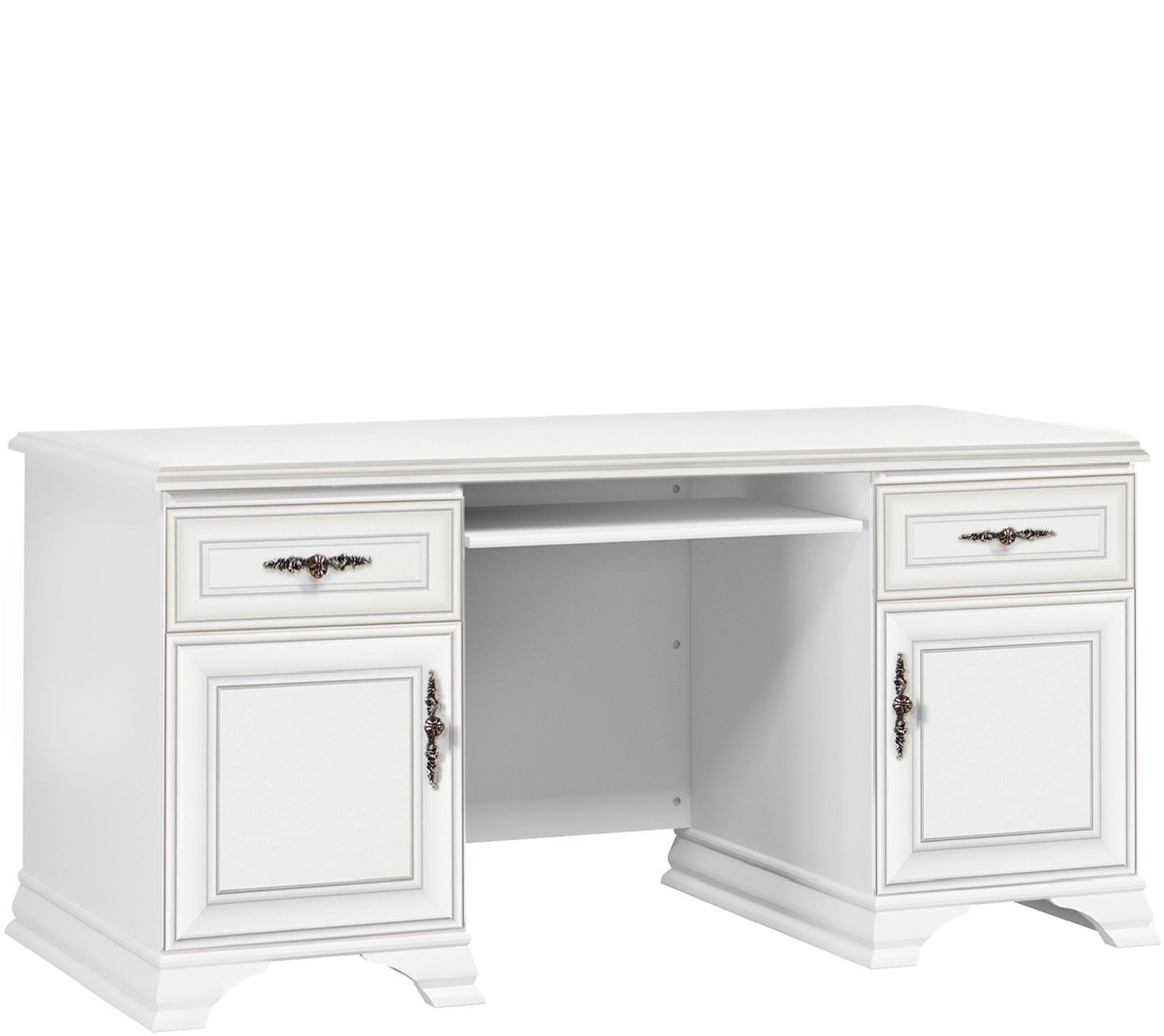 Фасады такой мебели украшены филенками и элегантными металлическими ручками. Устойчивость конструкции придают широкие, массивные ножки. Белый письменный стол серии Kentaki – отличный вариант для обустройства учебной и рабочей зоны. Он отлично вписывается в интерьер аналогичной стилистики и цветовой гаммы.