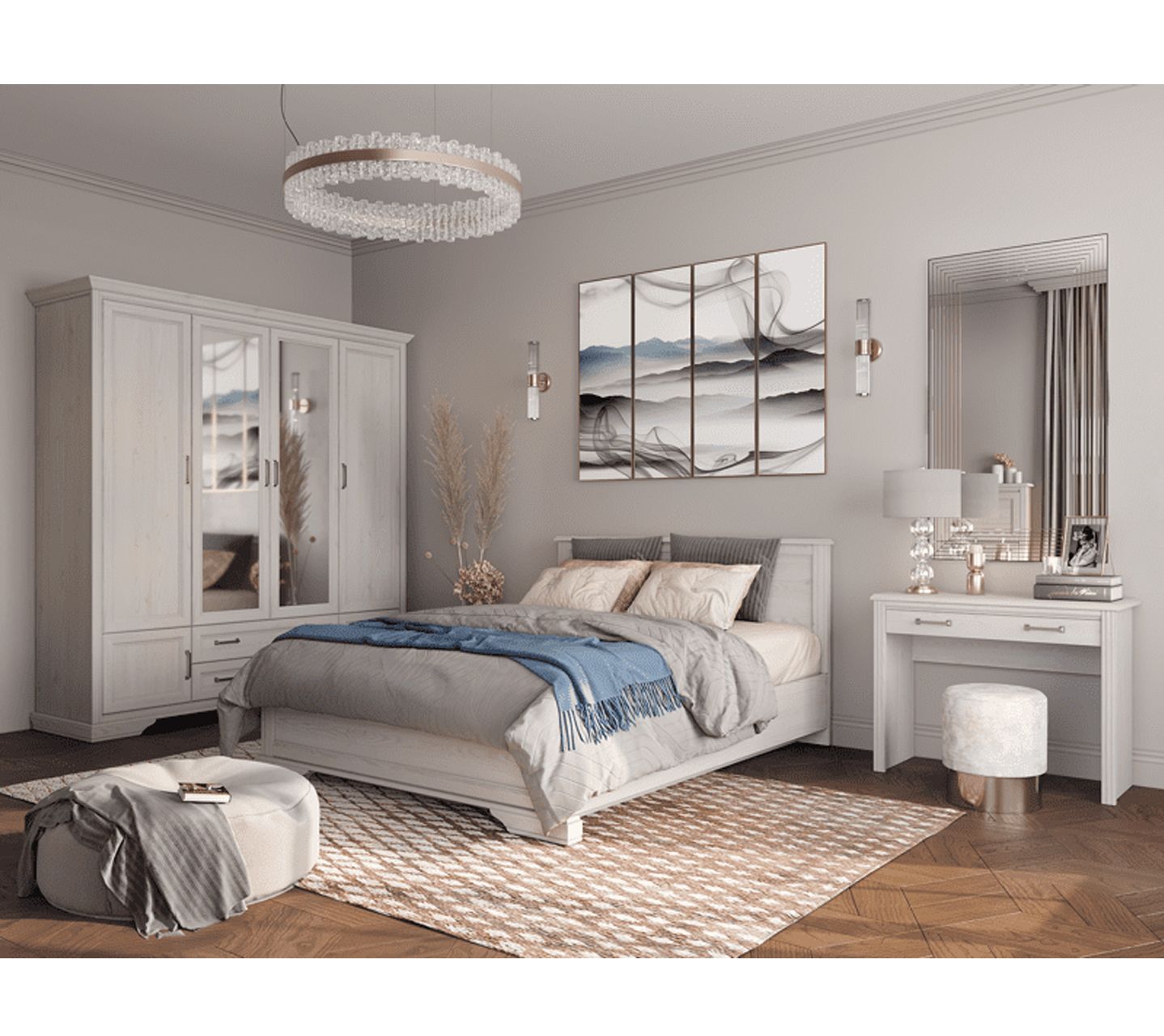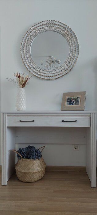 На столешнице шириной 100 см и глубиной 42 см можно расставить флаконы с духами, косметику и прочие женские мелочи. Она станет не только местом для хранения, но и предметом, который преобразит пространство. Цвет сибирской лиственницы добавит комнатам света и гармонично впишется в классический и неоклассический стиль.