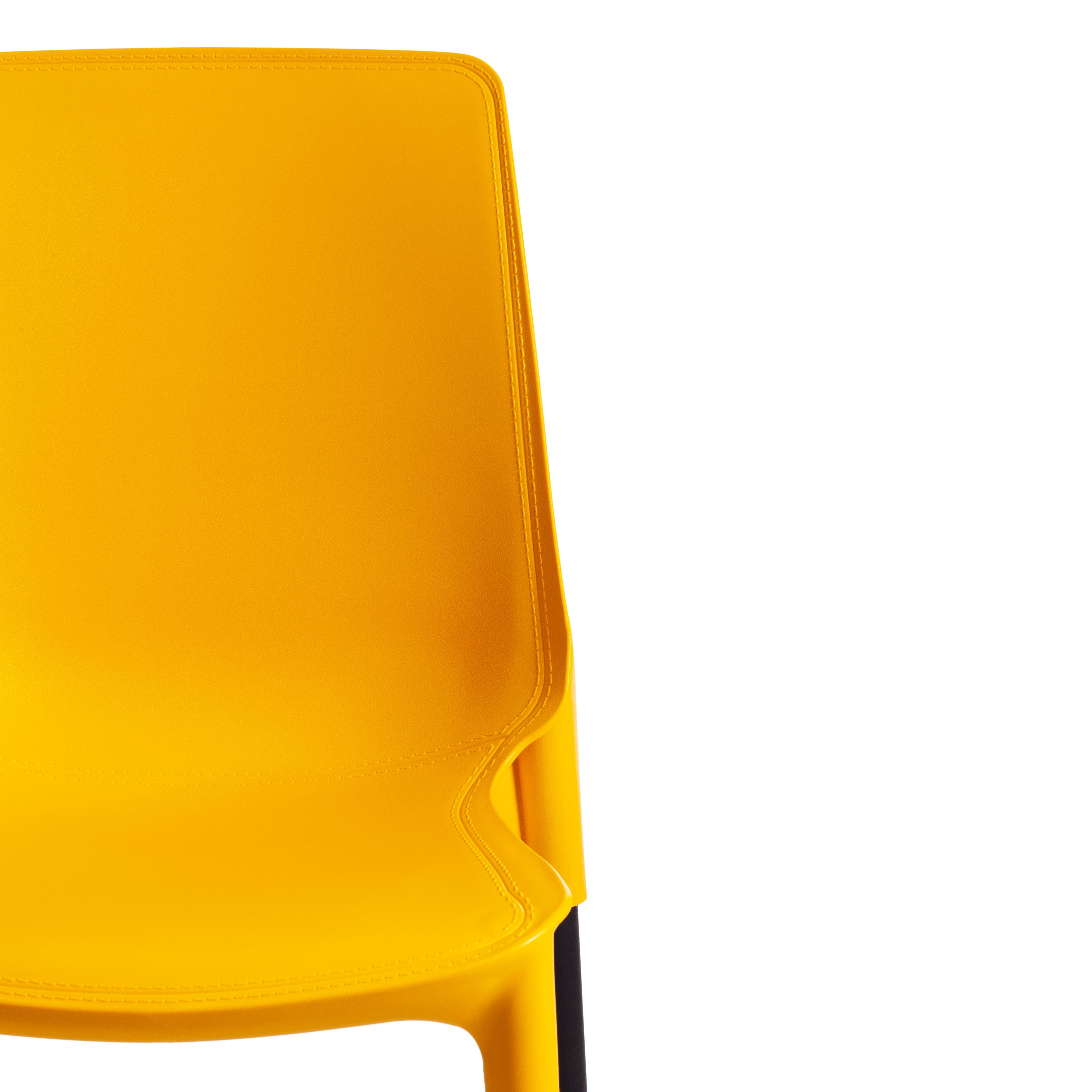 Простой и комфортный стул GENIUS из коллекции Modern станет незаменимым предметом интерьера в городской квартире, на загородной веранде или приусадебном участке. Стул может украсить любое пространство, изменить обстановку в лучшую сторону, наполнить интерьер легкостью и уютом. Декоративная отделка сиденья и спинки, имитирующая простроченную кожу, и металлические ножки, оцинкованные и окрашенные порошковой краской, выгодно выделяют стул среди привычной мебели. Удобное сиденье и спинка позволяют комфортно сидеть в течение длительного времени. Стулья GENIUS можно штабелировать по 5 штук, что позволяет экономить место при хранении. Сиденье стула выполнено из полипропилена желтого цвета с армирующими добавками. Благодаря чему модель практична, надежна, способна выдерживать большие нагрузки, устойчива к воздействию влаги, температурным перепадам и проста в уходе.