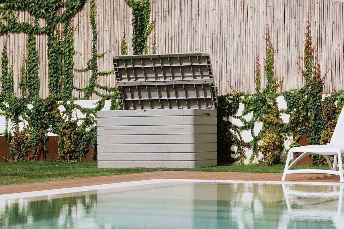 В сундуке достаточно места для хранения садовых инструментов, подушек, мебели для патио и многого другого.