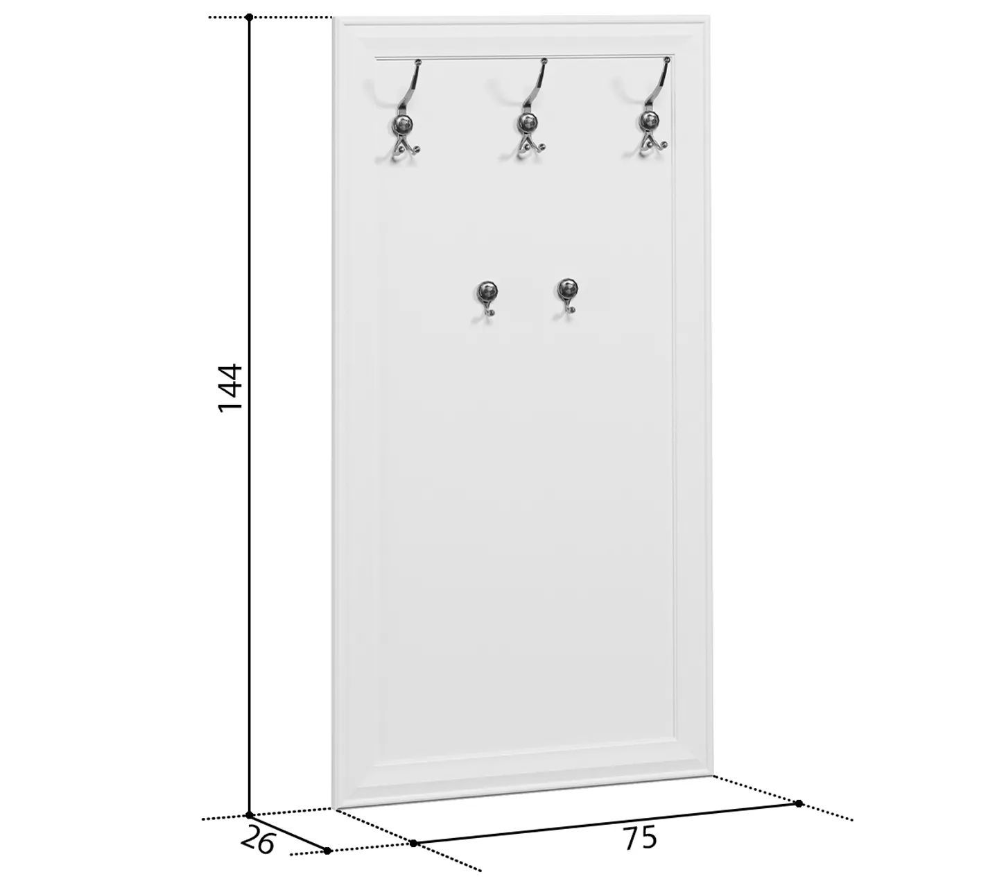 Белые вешалки Kentaki имеют высоту 144 см, ширину 75 см и глубину 3 см. Это небольшие по размеру изделия, которые свободно вписываются даже в самые маленькие пространства. Они подходят помещениям, в которых невозможно установить полноразмерный шкаф и организовать гардеробную.