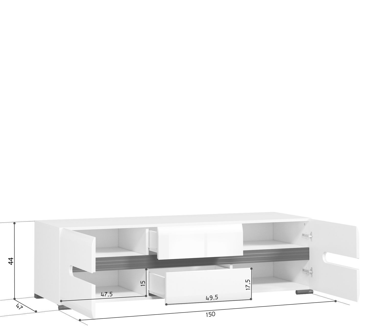 Белая тумба Azteca станет яркой доминантой интерьера и сделает комнату еще светлее. За счет универсального дизайна она легко впишется в любой тип помещения, а пластиковые ножки придадут ей дополнительную устойчивость и лаконичный вид. Тумбочка шириной 150 см подходит для установки телевизора любой диагонали, а также размещения аудиосистемы и предметов декора. Она визуально подчеркнет зону ТВ и обратит на себя внимание идеальной геометрией.