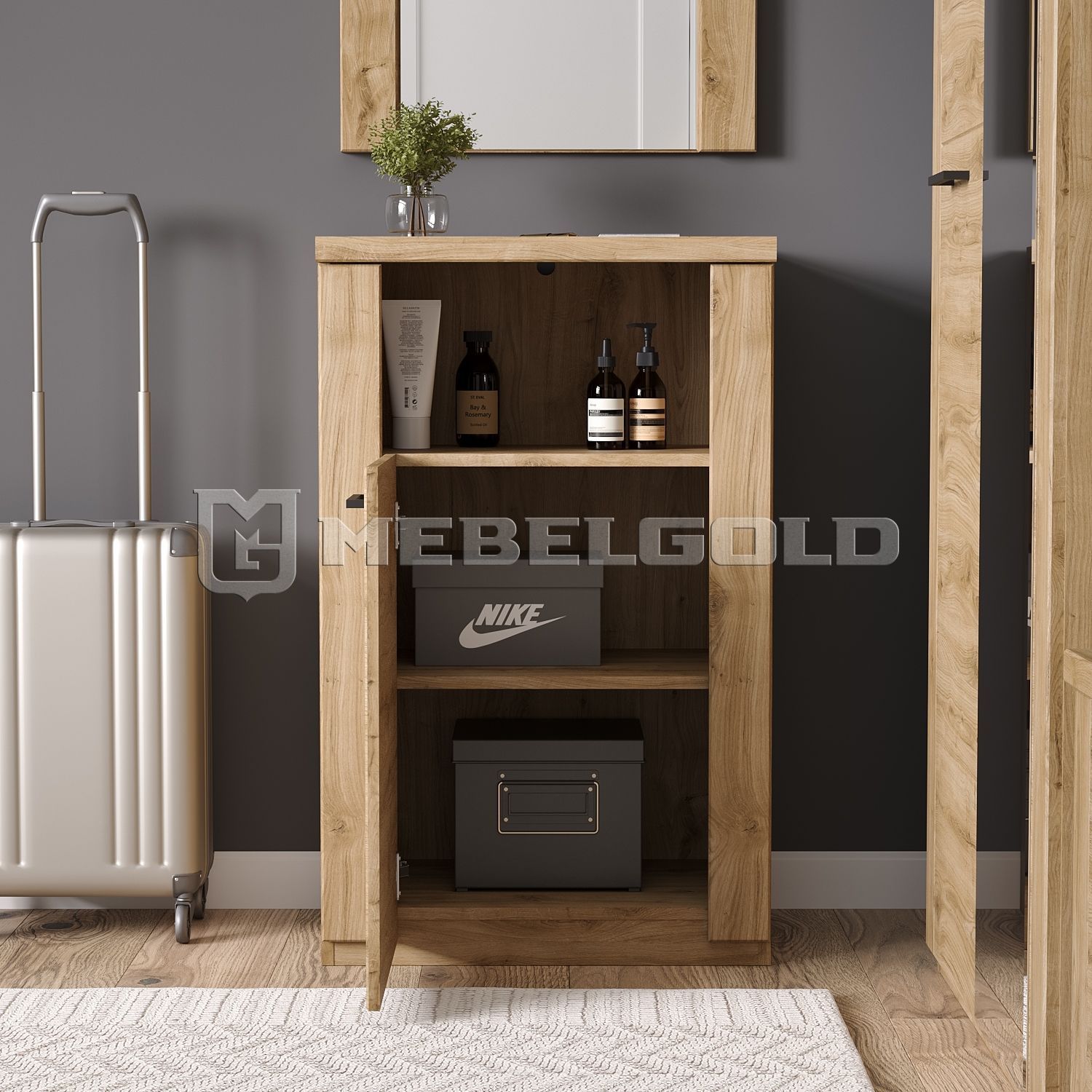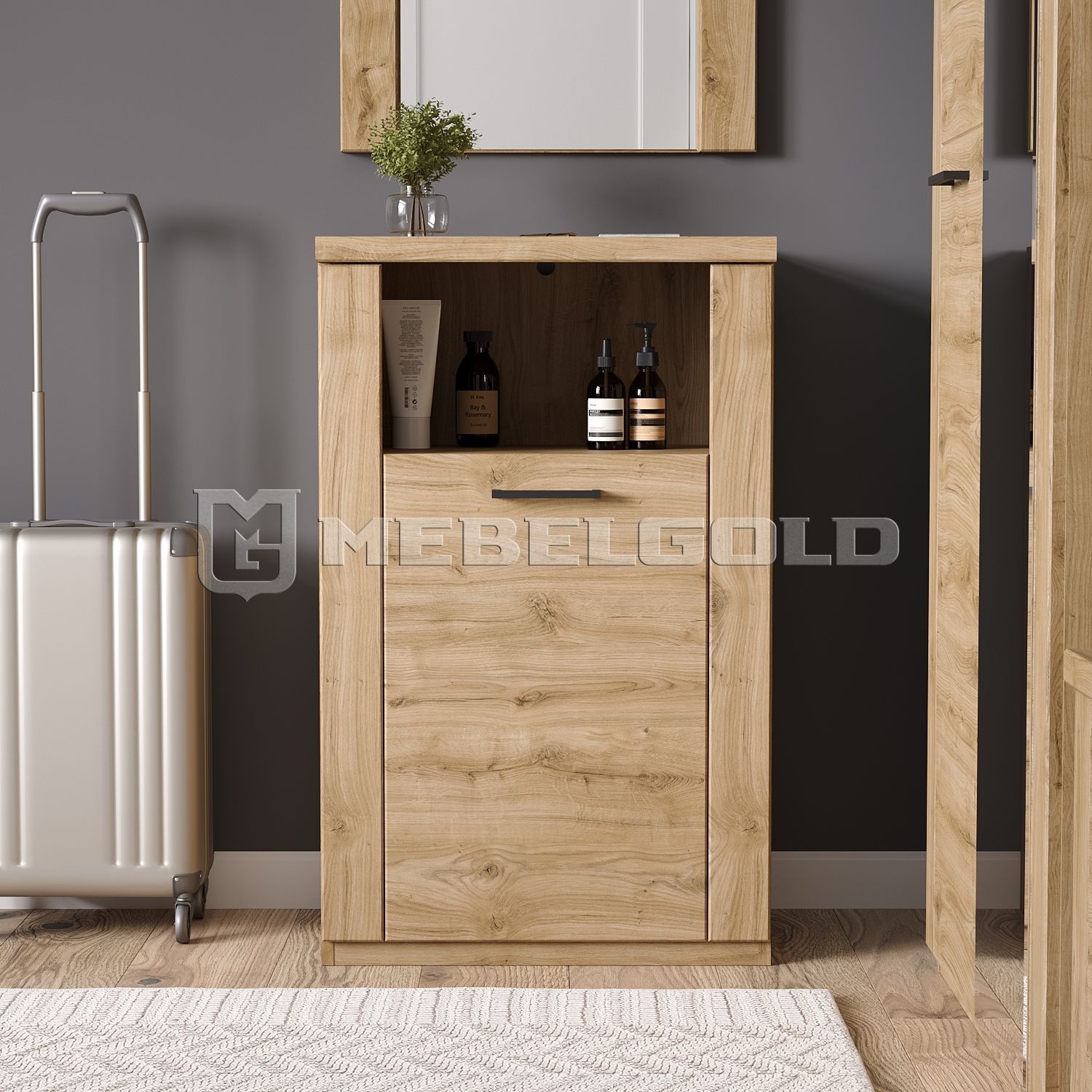 Напольная белорусская тумба Doorset 1DN с распашной дверью и открытым отделением займет достойное место в современных интерьерах. Рядом со столом, шкафом или кроватью она лучше всего выполняет свои функции. В прихожей тумбочка «Дорсет» поможет хранить сумки и головные уборы, в детской и молодежной комнате – игры, предметы творчества и хобби. По своим характеристикам она легко заменит небольшой комод и станет важной частью быта.