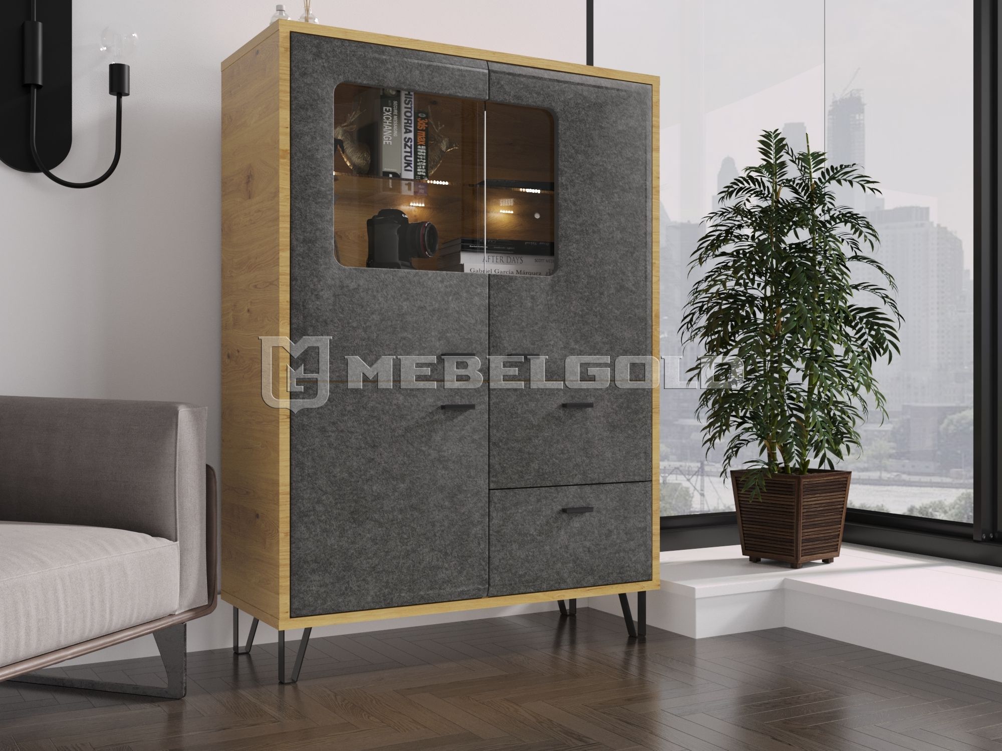 Тумба Grace с элегантным графитовым фасадом и каркасом «под дуб» ‑ беспроигрышное решение для современной гостиной.