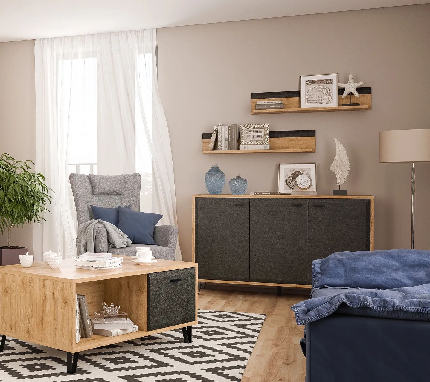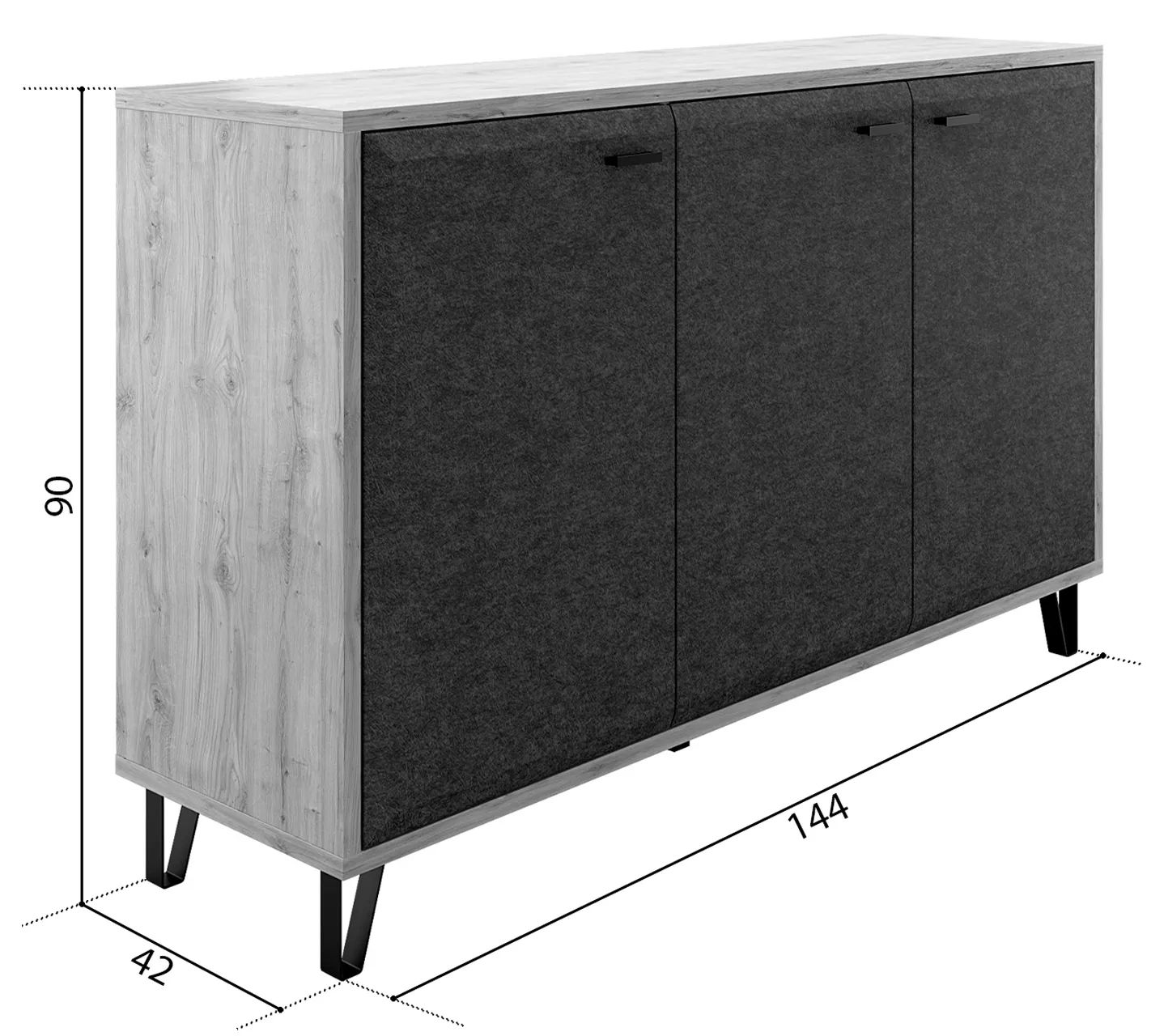 Тумба с тремя распашными дверями Grace – воплощение стиля и грации. Ее глухие фасады располагаются в одной плоскости и привлекают симметричным расположением. Тумбочка изготовлена из надежных материалов ЛДСП и МДФ, точно передающих древесную фактуру дуба наварро и выразительный графитовый цвет дверей.