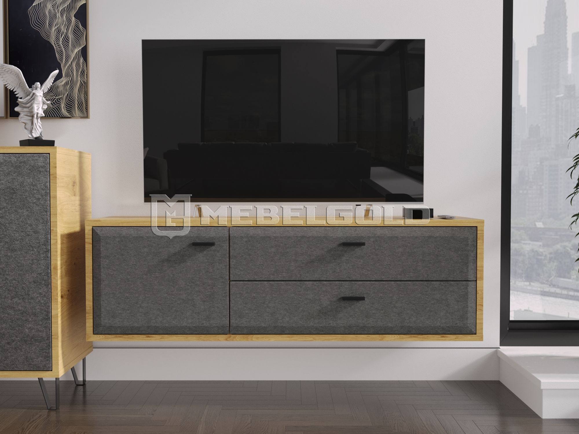 Навесная белорусская тумба Grace шириной 135 см и высотой 41 см компактно разместится на стене и станет прекрасной альтернативой ТВ-тумбе. Эта модель имеет горизонтальное расположение, два ящика и дверцу с полкой внутри. Ее поверхность в древесных тонах, оттененная графитовыми фасадами и черными прямыми ручками, гармонично вписывается в современные интерьеры.