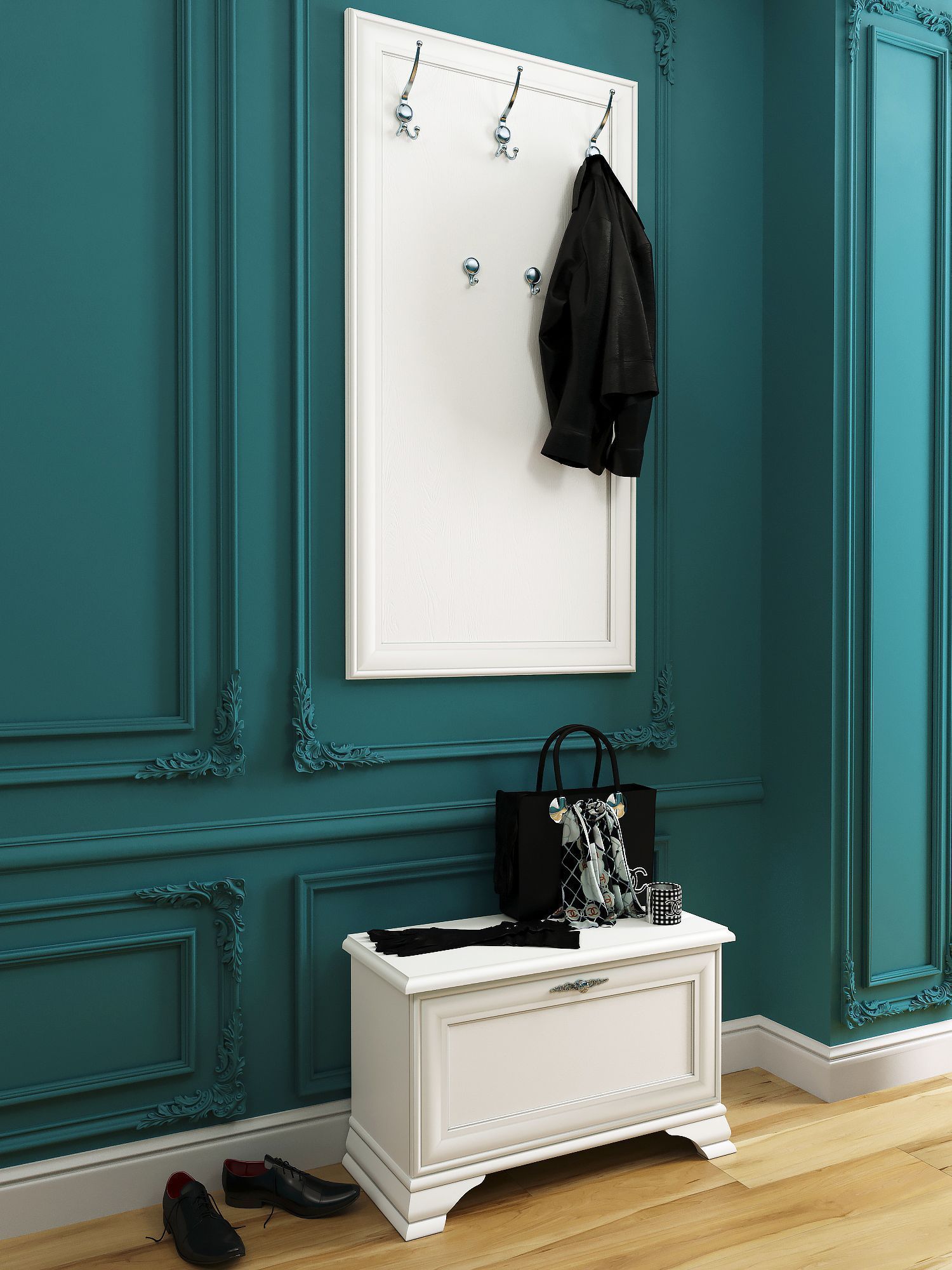 В интерьере белую тумбу Kentaki можно использовать отдельно, а также в комплекте с зеркалом или пристенной обувницей.