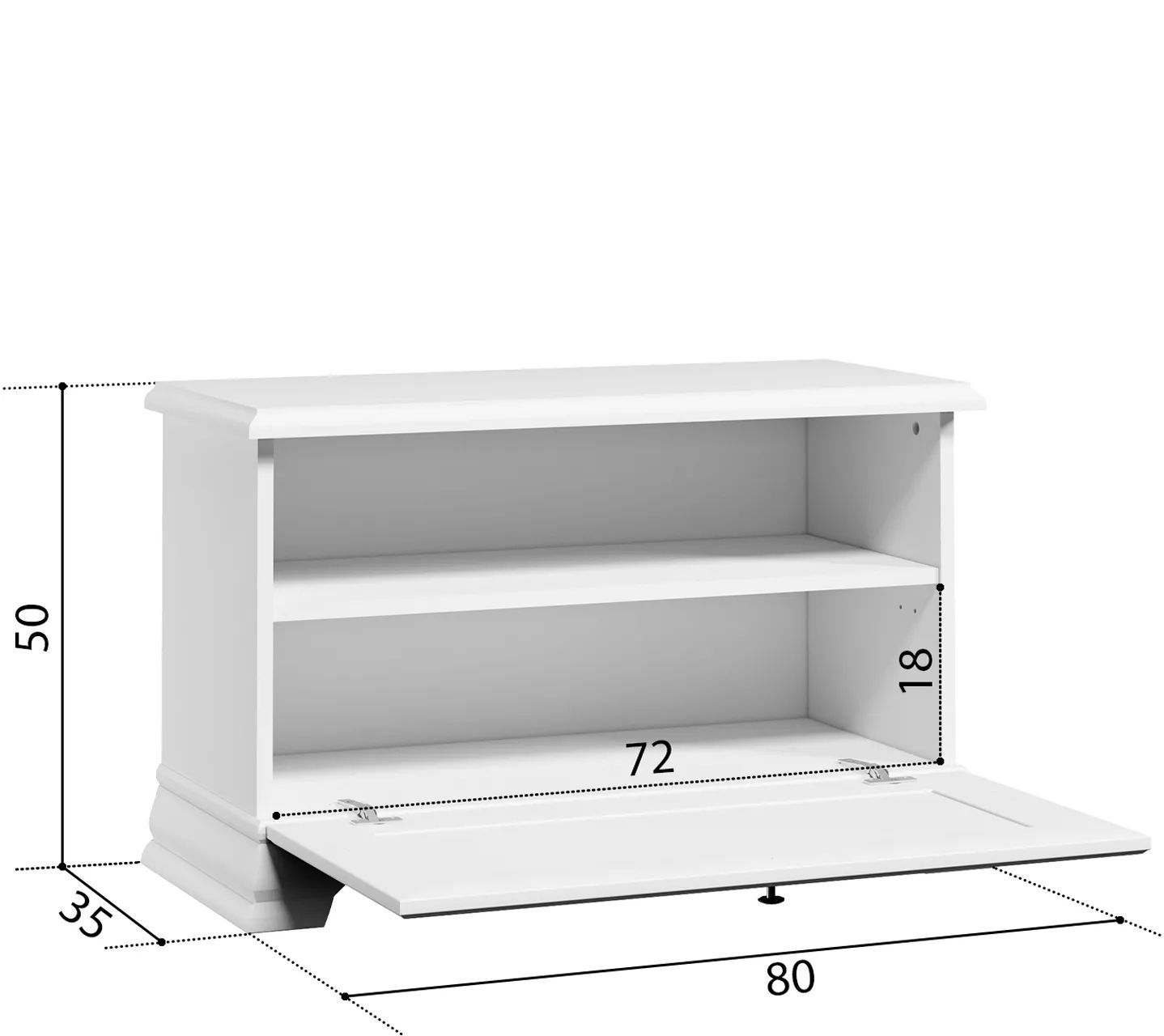 Тумбочка шириной 80 см, высотой 50 см и глубиной 35 см не займет большого пространства и поможет организовать уютный уголок для хранения домашних тапочек и строгих туфель. Заломы и вмятины на обуви не остаются. Строгий вид и лаконичная отделка позволит вписать ее в классический, неоклассический и современный интерьер.