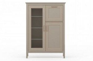 Тумба-витрина серо-глиняного цвета Classic BRW с подсветкой и металлическими ручками под медь впишется в гостиные и кухни классического стиля. Она добавит обстановке тепла и на высшем уровне организует хранение вещей. Вставки с фацетом придадут такой мебели дорогой и статусный вид. Подобно ювелирной огранке, стекло приобретает выразительность и безопасность. Тумба с элементами витрины «Классик» станет долгосрочным вложением в комфорт и украшение интерьера.