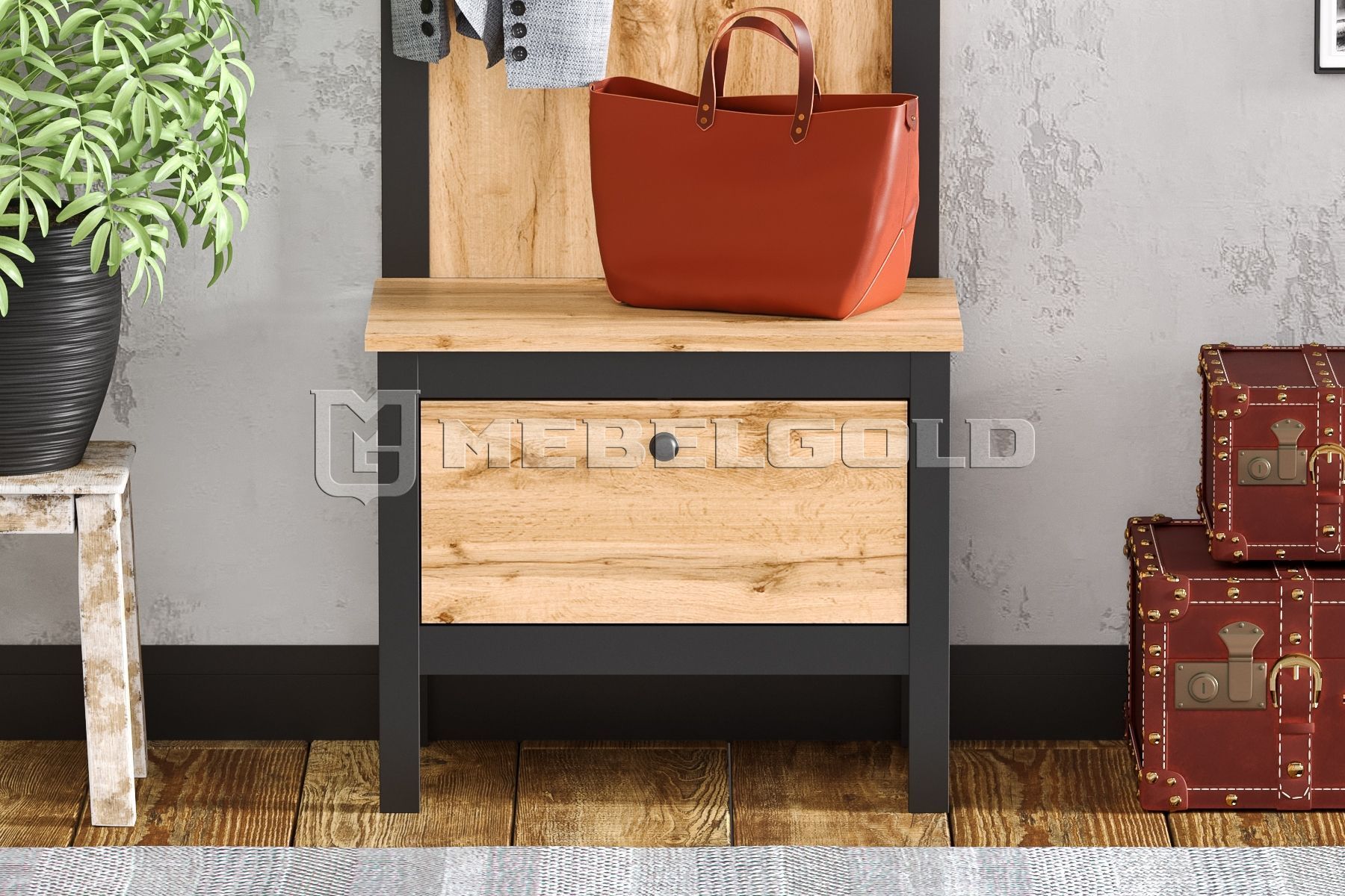 Удобная тумба. Очень быстро собирается! Покупала в комплекте с вешалкой и комодом.