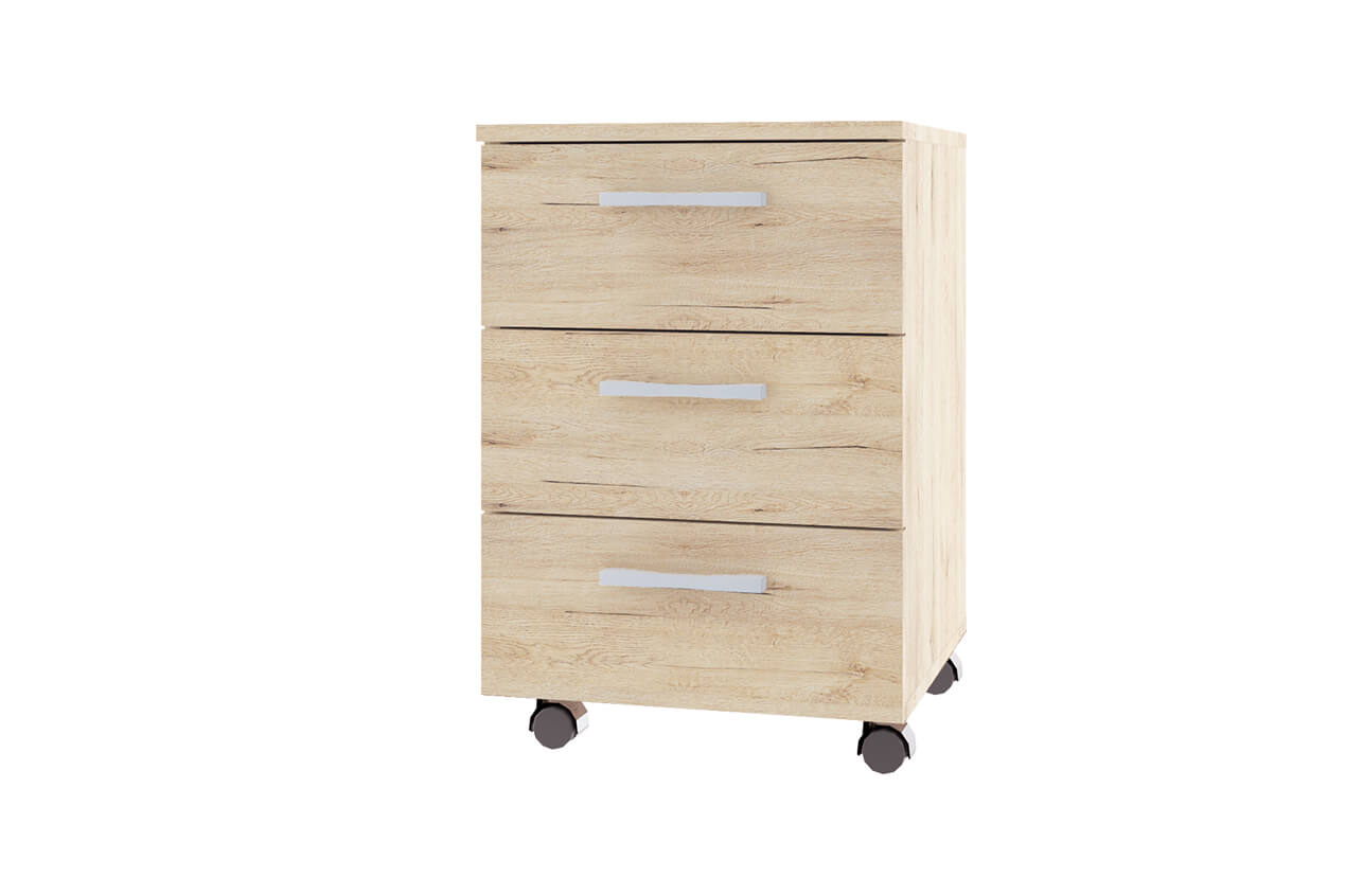 Низкая тумба на колесиках Oskar 3S – отличное приобретение для спальни, детской и молодежной комнаты. Эта миниатюрная и мобильная модель укомплектована тремя выдвижными ящиками и прямыми пластмассовыми ручками серебристого цвета. Благодаря способности к перемещению, она легко станет частью письменного стола, заменит прикроватную тумбочку или другую мебель.
