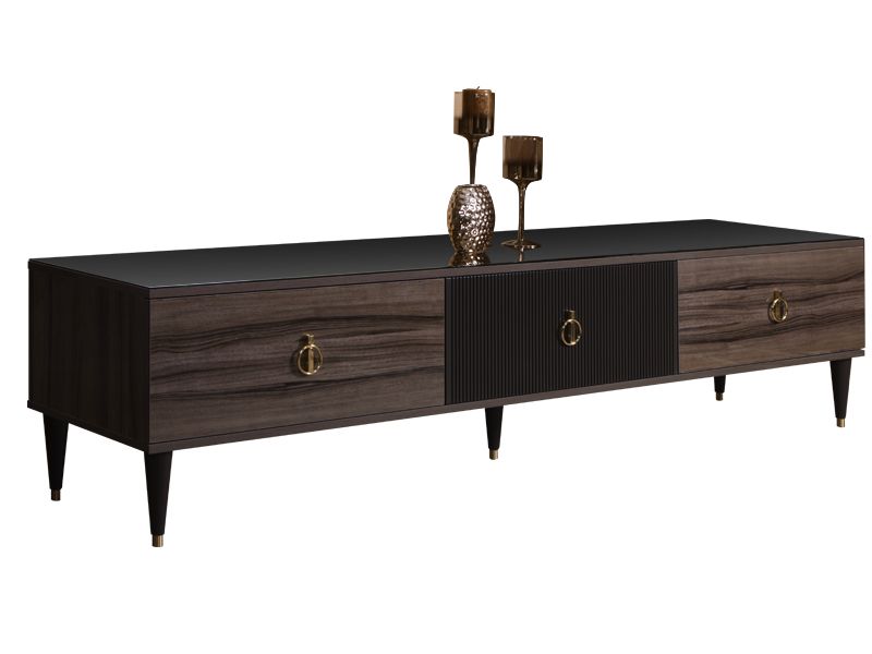 Тумба под телевизор 3 ящика Римини СОЛО (Орех империя/Золото) РМТ-4(s)