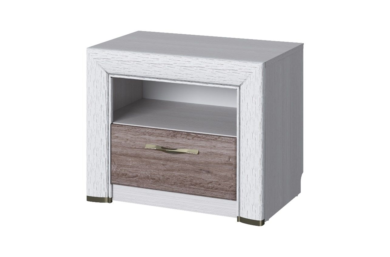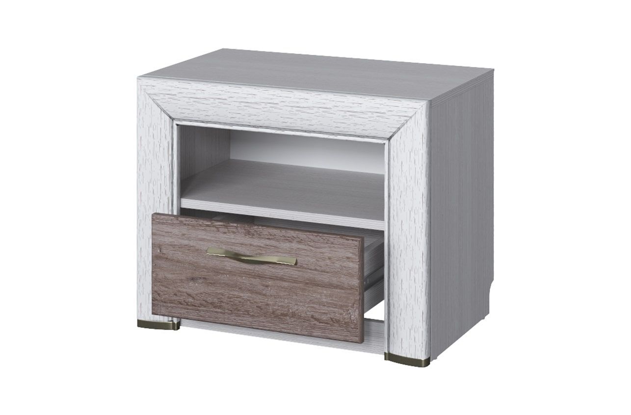 Прикроватная тумба Olivia 1S – отличный вариант для любителей современного стиля. Она содержит минимум деталей и обеспечивает общий комфорт нахождения в спальне. Эта компактная модель высотой 45 см содержит один выдвижной ящик и открытую полку. На ее поверхности размером 56×36 см можно хранить все, от светильника до баночек с кремом и любимой книги. Для большего удобства производитель Anrex добавил к ящику стильную металлическую ручку.