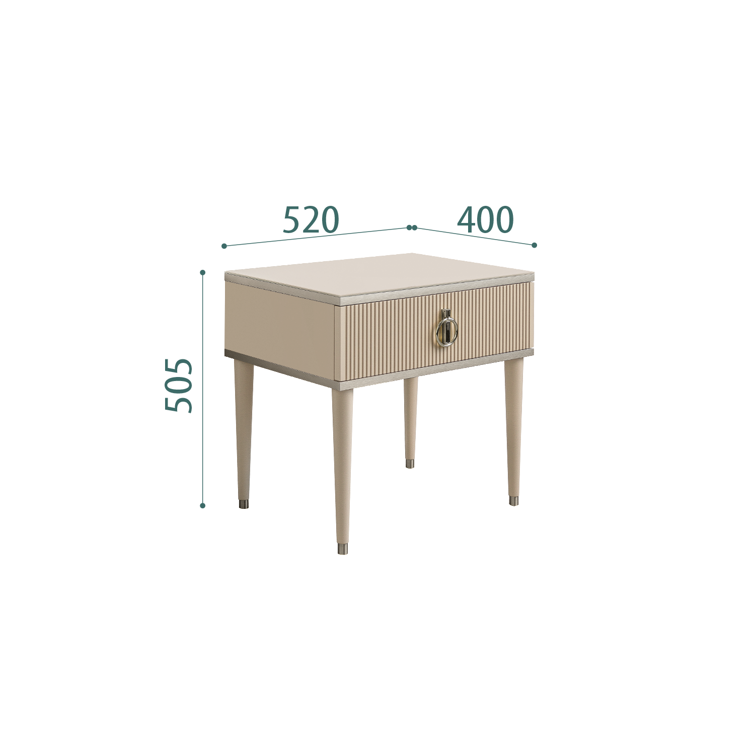 Эта компактная конструкция высотой 505 мм и шириной 520 мм на высоких деревянных ножках с латунными наконечниками гармонично вписывается в интерьер спальни современного стиля. Ее лакированная поверхность, оформленная крашеным стеклом Lakobel, обеспечит 100% передачу цвета и выразительность. Проходящая по краю фаска придает мебели аккуратный вид и защищает ее от быстрого износа.