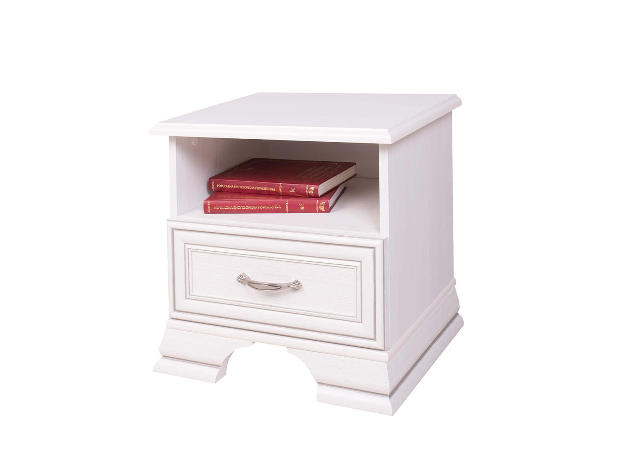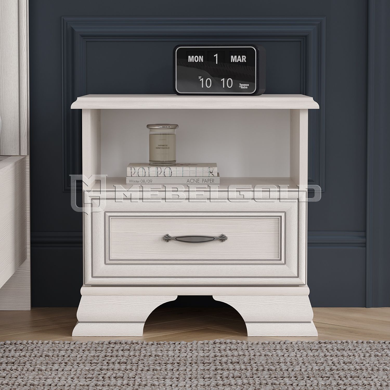 В открытом отделении тумбы 1S Tiffany можно расположить предметы постоянного пользования, а в ящике спрятать то, что не должно быть на виду. Эта модель с филенчатыми фасадами, массивными резными ножками и витиеватыми ручками содержит все черты классического стиля. Тумба серии 1S «Тиффани» подойдет кроватям аналогичной коллекции и спальням.