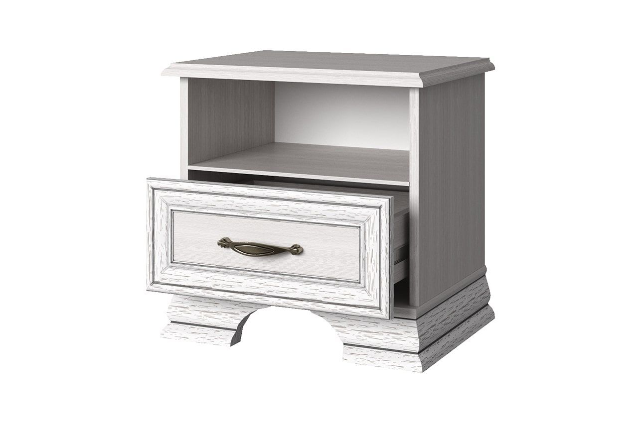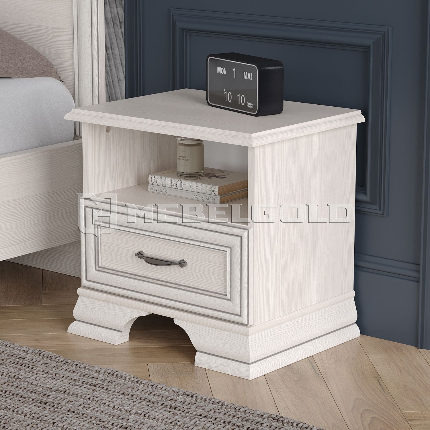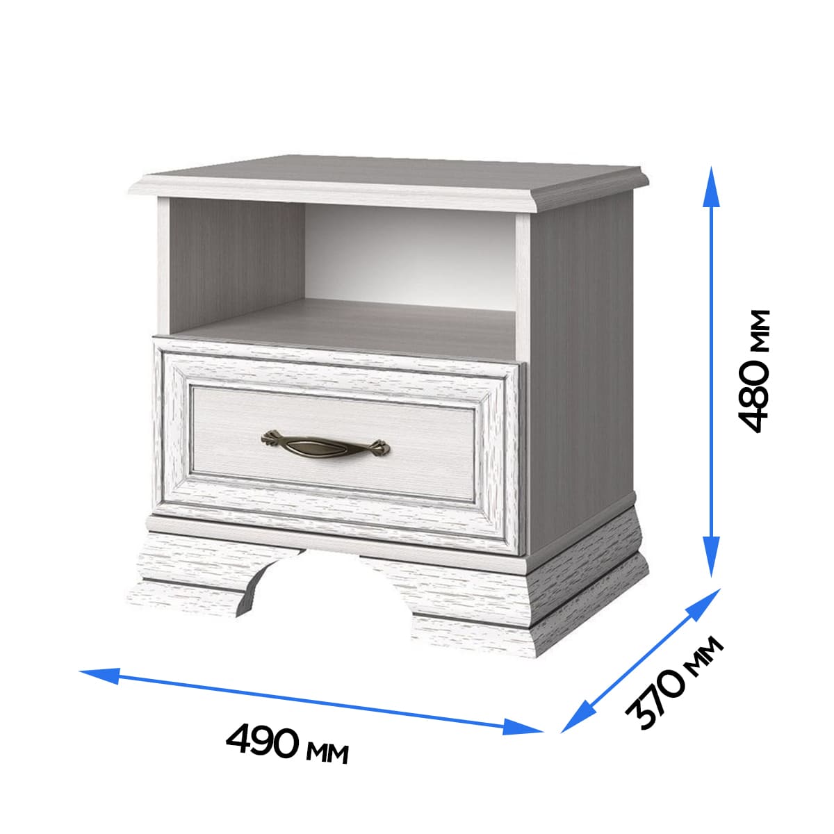 Она изготовлена белорусским брендом Anrex из ЛДСП, а декоративные планки выполнены из МДФ. Прикроватная тумба 1S Tiffany – образец удобства, экологичности и продуманного исполнения. Ее ширина составляет 49 см, что позволит хранить мелкие предметы типа будильника, книги и небольшого ночника.
