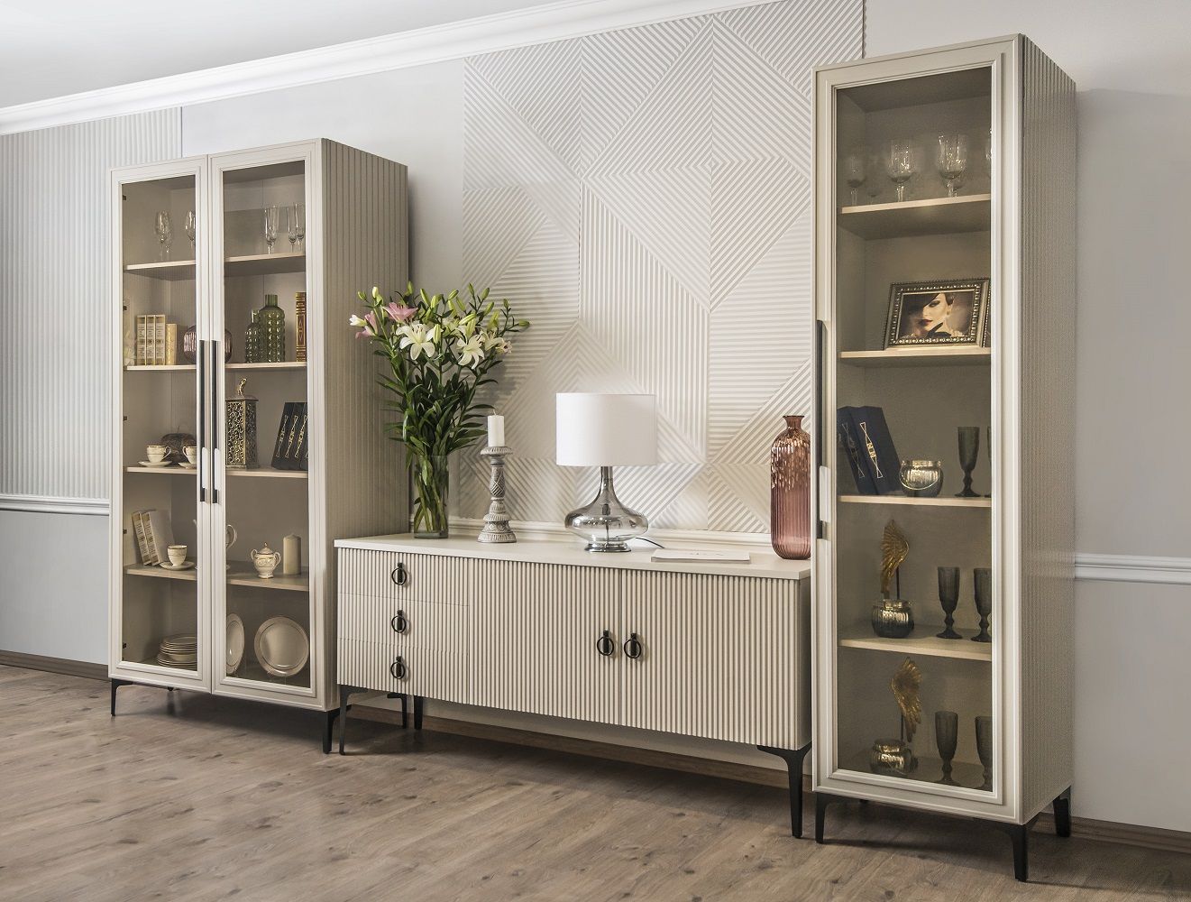 Каждая деталь спальни тщательно продумана, чтобы подарить вам не только максимальный комфорт и эстетическое удовольствие, но и уверенность в высоком качестве мебели. Корпуса и столешницы модулей выполнены из ламинированной древесной плиты европейского качества, Фасады из природного МДФ задекорированы рельефной фрезеровкой и авторский стиль фабрики ЭРА — это финишное покрытие матовая итальянская эмаль ярко серого цвета.